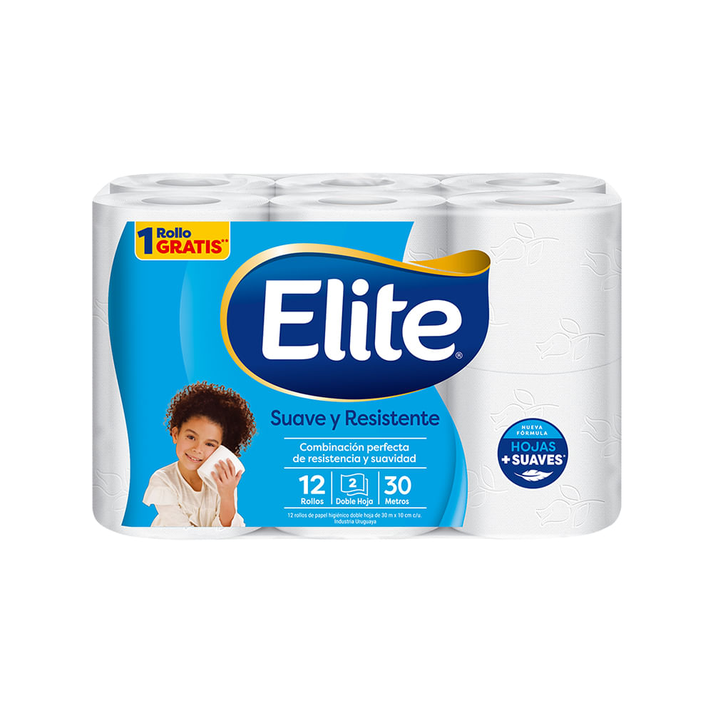 Papel Higiénico Elite Suave y Resistente Doble Hoja, 4 paquetes de 12 unid.